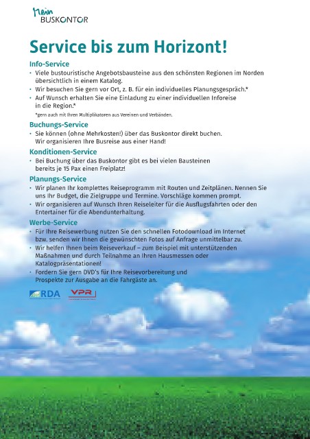 • Viele bustouristische Angebotsbausteine aus den schönsten Regionen im Norden