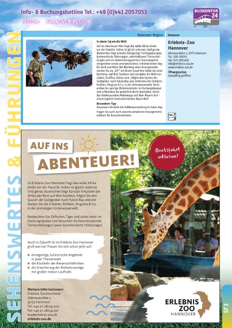 Info- & Buchungshotline Tel.: +49 (0)441 2057053
